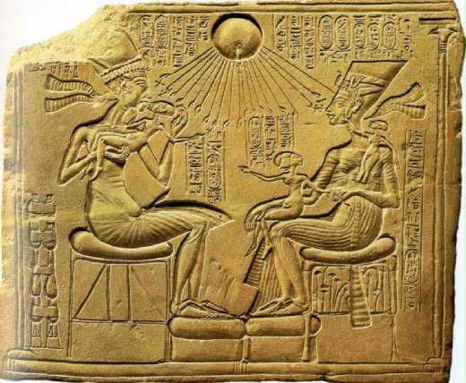 到了阿肯那頓時期(公元前1350~1333在位),取消所有的太陽神信仰,獨尊「阿頓神」。阿頓神沒有人的形象,只有頂上的一圈日輪,由日輪放射太陽的光芒,在每道光芒下方,是一隻手,說明萬物是阿頓遍照、護持。