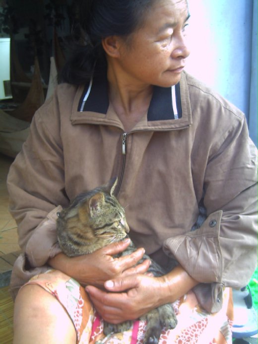 之後,就如往常;爸爸繼續刻未完工的小船!媽則是抱著我家小喵!看著小狗!^^