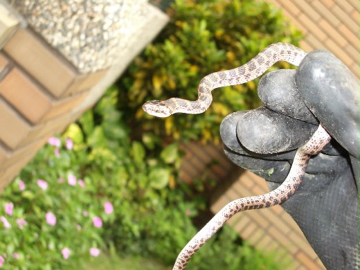 話說我家老爸蠻大膽的,幾星期前在院子裡忙的時候意外的發現了那 x 蛇 ( 至今還不確定有沒有毒呢 =..= ) ,也不曉得雄糾糾氣昂 x 蛇那天是不是 在院子裡小打個盹、行動稍稍遲緩了些,才會在一睜開眼時就被老爸擒拿,一招剪刀手、十字固定、再來個鎖喉,它就頭暈目眩、連掙扎都有氣無力了啦。