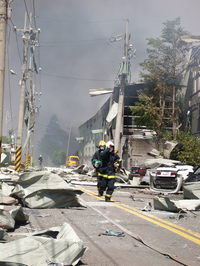 第一次到爆炸現場,說不嚇是騙人的。因為是化學工廠爆炸,現場化學酸味四溢,學姐也交代不要深呼吸,不然有可能昏倒。我戴著口罩手抓相機,在現場到處走,滿地都是鐵皮碎片和碎玻璃。看著同業前輩們和學姐抓著相機深入現場猛拍,我只敢遠遠的觀望,就怕被「酸」倒了;現場的高溫也讓我卻步,高溫不斷透過皮膚傳導過來,害我心裡拼命尖叫:「該不會再次爆炸,我們就這樣死在這吧?」資深同業們在現場大膽的走來走去,拍照、抄筆記,還提醒我「妹妹要小心阿!」看見記者為觀眾傳達「真實」而冒險犯難的精神,越來越對「記者」這一行佩服。