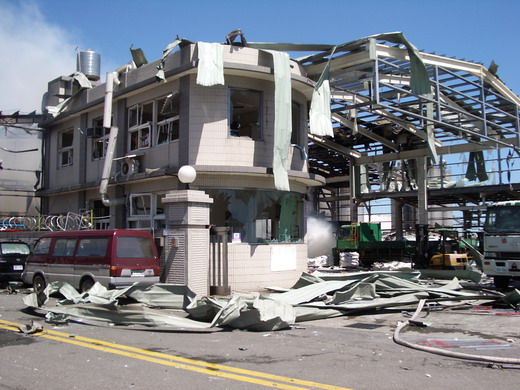 的10輛車輛悉數毀損,災害現場像原子彈炸過一樣,工廠宿舍和辦公