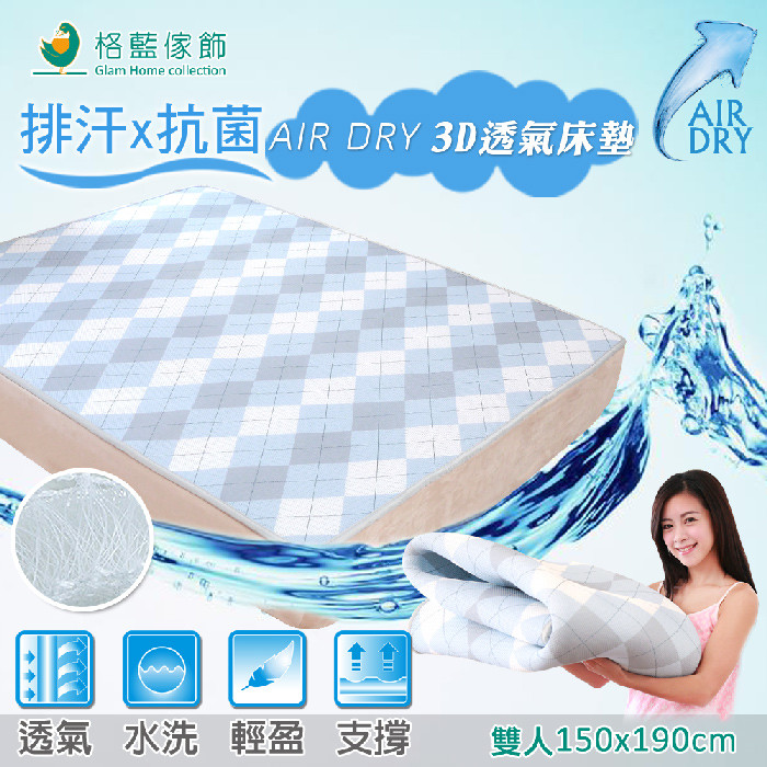 AIR-dry排汗抗菌3D透氣雙人床墊(150x190x1CM)