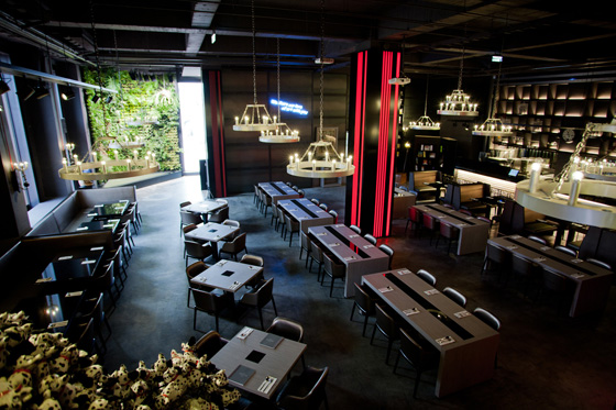 灰色底相間鮮紅線條,帶點現代、帶點俐落的空間,可隨性的找一個屬於自己的角落,恣意看場精彩Live賽事或音樂實況。挑高六米的寬廣空間底下,有著笑語、音樂、杯盤聲的流轉、交錯,在這裡,客席的配置有舒適的距離,也有體貼地保留了親密。