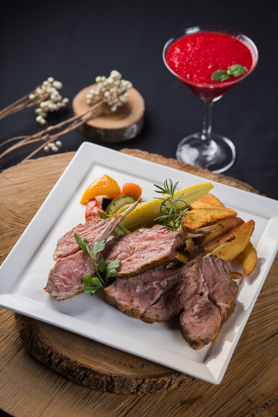 煎烤羊肩排佐薄荷醬附的是薯塊