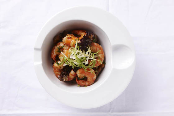 田園蔬菜沙拉和風醬汁風味搭配五隻炸蝦