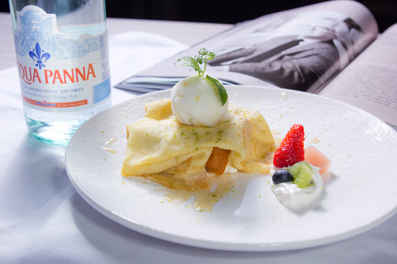 酸甜蜜汁甜薯Mascarpone起司薄餅附檸檬雪酪