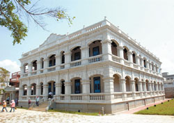 ▲長期做為官兵休假中心的陳景蘭大洋樓,整修後再見宏偉氣勢(金門日報)。