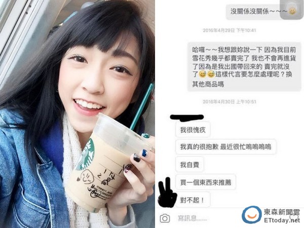 自稱賣家朋友的網友在爆料公社PO出多張與葛佳靈對話的內容,葛在對話中坦言因為自己最近太忙,之後會自費買個東西推薦,但當賣家提供其他兩款商品讓她挑選時,她又說已有該項商品,或是說因某某款效果不好為由拒絕,最後她也笑說,自己好難搞。