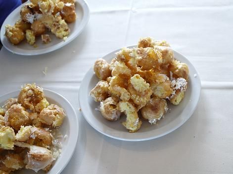 為了敲開這個蛋糕,新娘準備了他從Samoa帶回來的原住民木刀。法式傳統上是伴娘用裙子去接掉下來的泡芙,因為我的裙子太短不適合,這麼貴的禮服我也不願意用來接泡芙,我和一位朋友兩個人拿著酒紅色的桌巾來接。結果新郎打得太大力了,我來不及請扶盤子的朋友扶住泡芙底部,結果我們用桌巾接住了上半段,下半段掉到地毯上。不過這段敲泡芙塔的遊戲娛樂了現場的來賓,會場的服務生幫我們把泡芙解體,然後送上兩大盤給賓客吃,大家都吃得很開心 還有不少朋友跑過來跟我說好吃,因為焦糖才剛做好幾個小時,吃起來很脆很香,搭配甜度剛好的內餡幫泡芙加分很多。分成六天找時間烤出來的90個泡芙體,一大鍋內餡,一大群人幫忙灌泡芙,貼滿膠帶的資料夾圓錐體,七杯半砂糖煮了一個多小時做成的焦糖,兩個多小時的組合時間,croquembouche 挑戰算滿成功了吧!