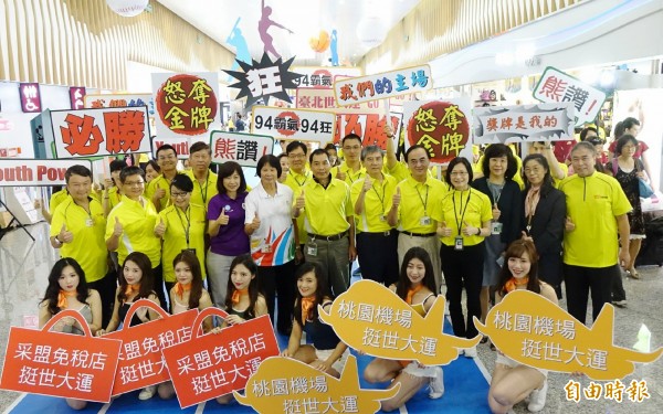 桃園機場采盟免稅店下午在第二航廈舉辦「齊心協力挺世大運」活動,希望讓全球旅客看見台灣將舉辦重要運動盛事。剛獲總統特聘無任所大使的「飛越羚羊」紀政、台北市政府副秘書長李文英、桃園市政府體育局副局長房瑞文等人也都特別現場,一起為世大運加油。
