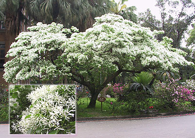 除了流蘇花盛開之外,紫白色苦楝花也在枝頭綻放,與純白色的流蘇花相互輝映,民眾到白石湖社區賞花時,可以好好觀賞比較,品味這二種花所展現的不同風情。