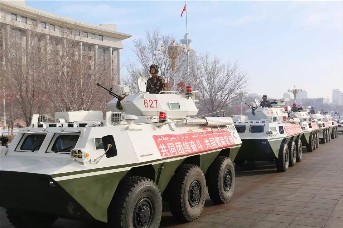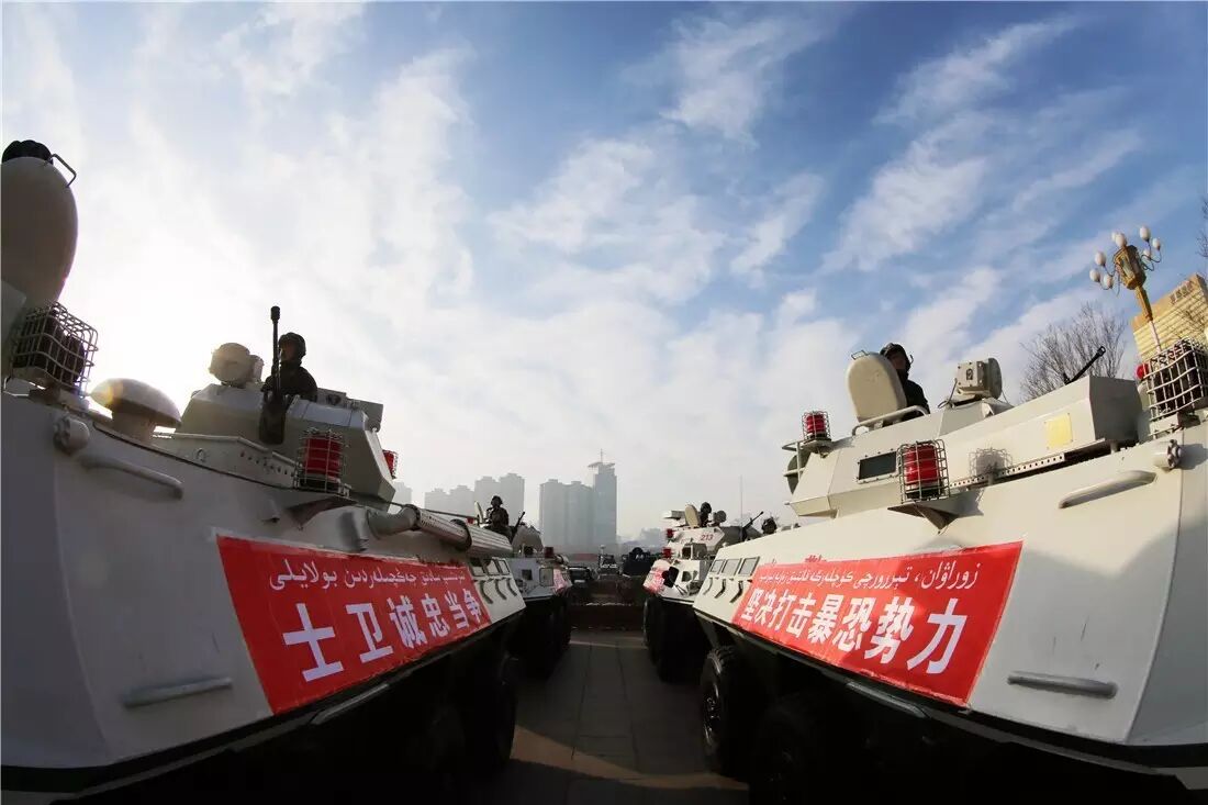 钢枪如林,战车滚滚,数万驻疆公安、武警官兵,在和田、喀什、乌鲁木齐连续三天举行反恐维稳誓师大会,雷霆之威震撼天山南北。