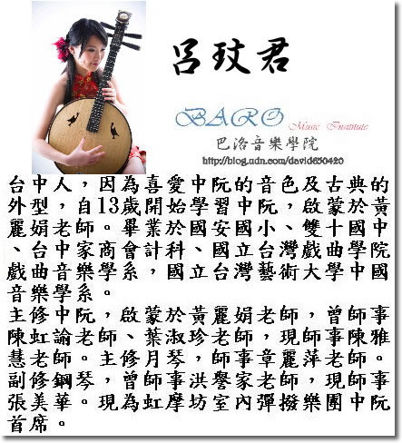 2010年5月:參與「板橋樂展─說唱戲曲篇」系展演出,擔任中阮