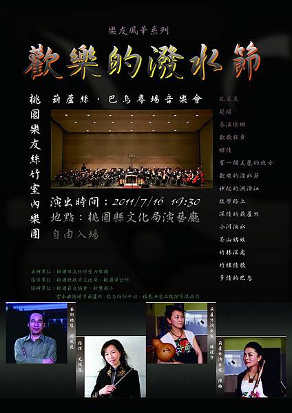 歡樂的潑水節~楊環宇、陳梅葫蘆絲、巴烏專場音樂會《桃園樂友絲竹室內樂團&楊環宇、陳梅》 演出日期:2011/7/16 星期六