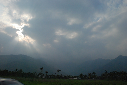 不斷下著的雨,突然停了下來,只剩下細雨飄著。