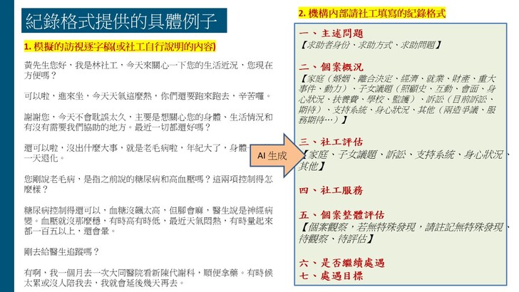 (AI)社工記錄輔助系統的設計理念、使用方式與相關議題簡介(影片與投影片)