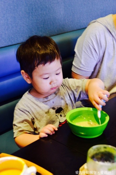 這個孩子在大人各自聊天,自己也吃得很開心呢 !