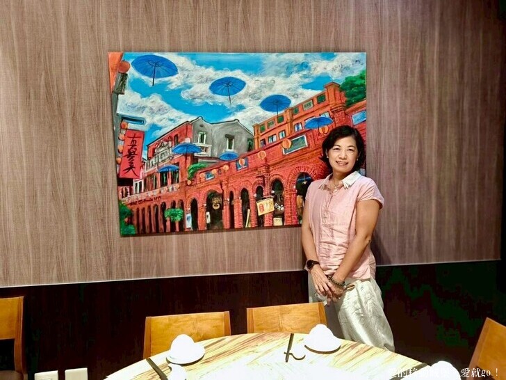 對於剛陳設的一幅 三峽老街 的畫作,可是出自名作家 陳艾妮老師 的手筆