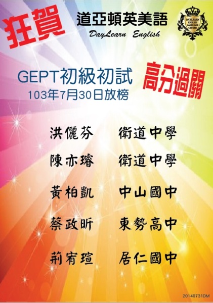 2014年(103年) GEPT全民英檢 初級初試報名公告