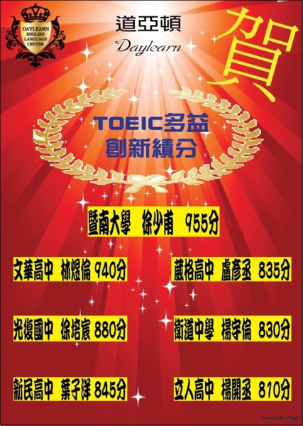 20140816道亞頓多益最新高分榜單