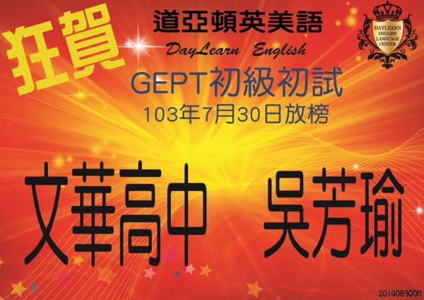 20140902道亞頓全民英檢中級初試榜單(吳芳瑜)