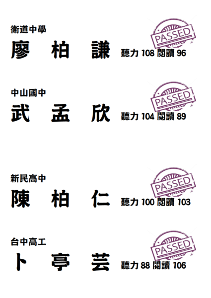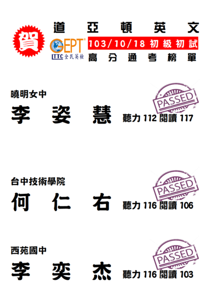 20140902道亞頓全民英檢中級初試榜單(吳芳瑜)