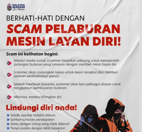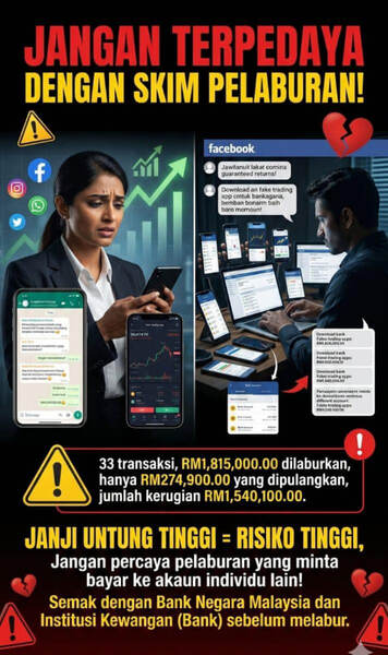 Jangan mudah percaya iklan media sosial — terutamanya yang menjanjikan keuntungan cepat.