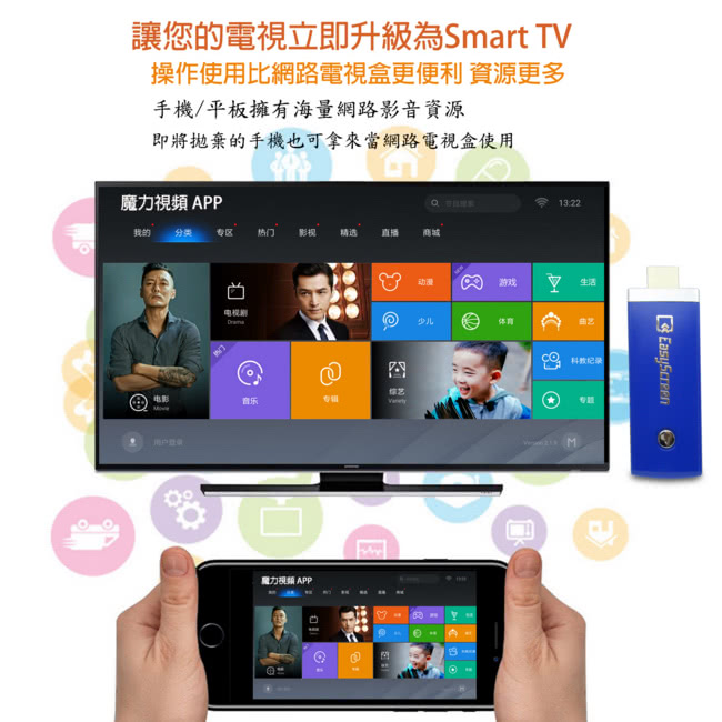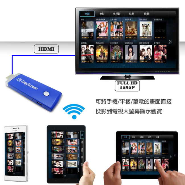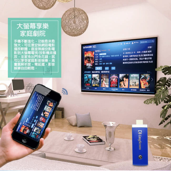 ■使用無線鏡像器,手機螢幕無線投影到電視,演示產品功能影片:
