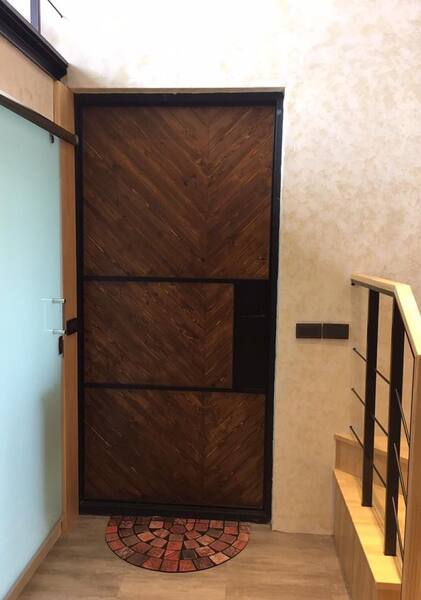 鐵工和木作以及油漆的結合的門片⋯⋯純手工喔!