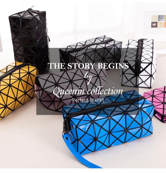 DF Queenin皮夾 - 摩登漆皮素面幾何拼貼菱格手拿包-共4色分享