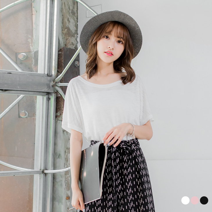 0621新品 微透膚素色質感竹節棉落肩上衣.3色
