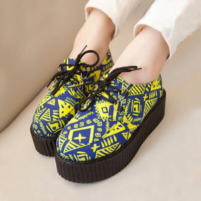 出自:線上購物分享 - ☆雙兒網☆【S028】日本原宿龐克風幾何印花厚底鬆糕鞋