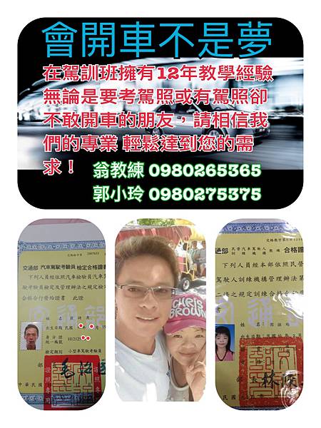 指定 郭教練 0980-275-375 翁教練0980-265-365 輕鬆拿駕照!