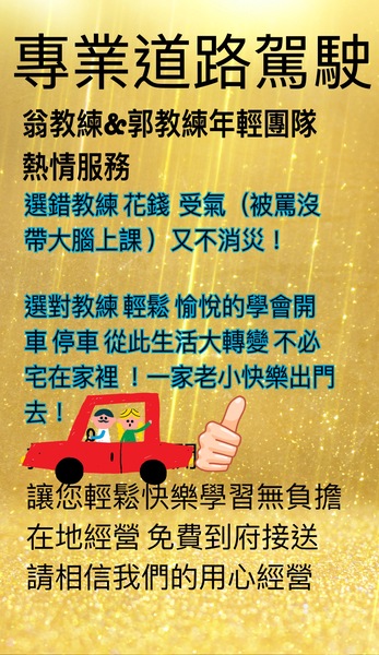 ***道路駕駛教學一定是我翁教練 或郭教練 親自教學不會假手他人***