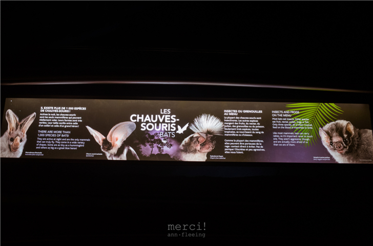 全館分成四個展區:Tropical Rainforest、Laurentian Maple Forest、Gulf of St. Lawrence、Sub-Polar Regions。參觀過多倫多動物園、溫哥華水族館,蒙特婁自然生態博物館算是動線規劃得最好的,館區雖然不大但每個細節都很貼心細緻,逛起來非常充實舒服,不會像多倫多動物園標示很難懂,走好遠好遠還看不到一隻動物。