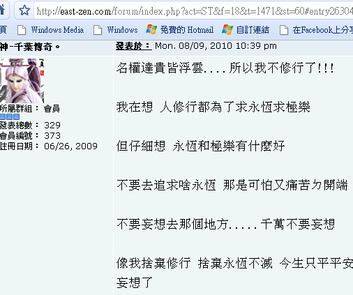 自稱棄道已久及不修行之後....沒事....所以淨堂-1也應該可以復出台壇重操賤業屁聲連連了
