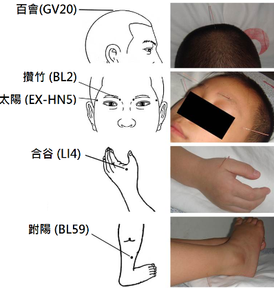 跟據傳統中醫理論來說,針灸治療弱視的基本原理,就是通過激發經氣的調整功能,來調節腑臟的功能狀態。基本治則為補益腎陽、醒腦明目。治療弱視時所選取的五個穴位,其中四個屬於「陽經」(Yang Meridians)(圖4):