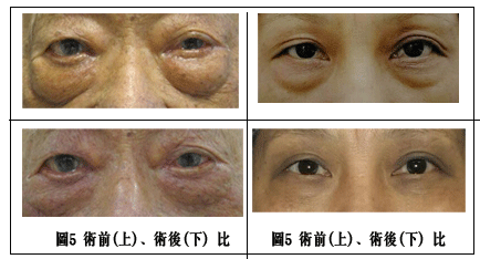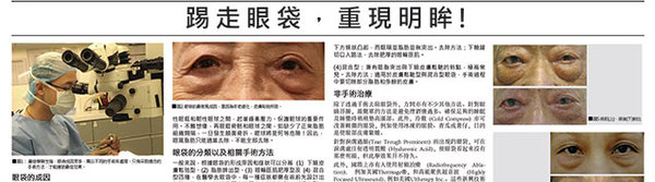 (3)眼輪匝肌肥厚型:瞼緣下方因眼輪匝肌肥厚,形成下瞼緣下方條狀凸起,而眶隔並脂肪並無突出。去除方法:下瞼緣切口入路法,去除肥厚的眼輪匝肌。