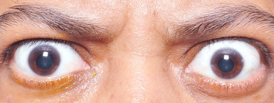 3. 眼瞼退縮:可以表現爲單側或雙側,對稱或不對稱。