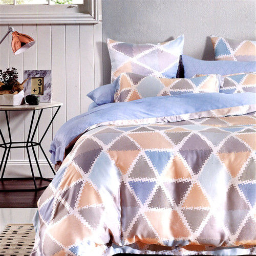 - fb討論-一夜好眠【eyah】單人被套-精梳純棉-LV-方格熊熊-藍