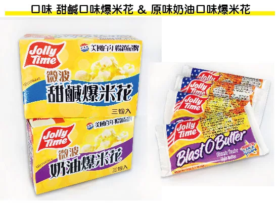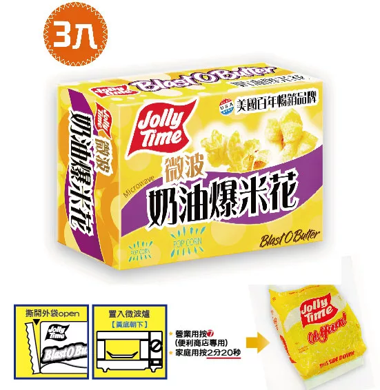 商品推薦:Jolly Time微波爆米花(奶油口味)-3入一盒