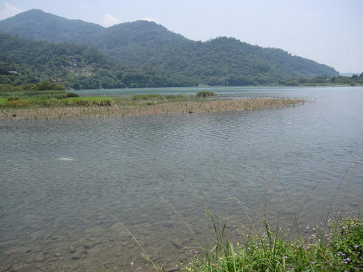 對岸矇矓的山巔 隱約矗立著幾桿天線