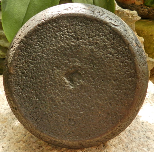 昔物齋(日本鐵壺)~(瓶底~未識款)(蘭菊竹文樣車軸形茶倉~高8cm~寬9cm)分享