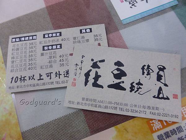 豆花湯底有糖水、豆漿與薑汁三選一,薑汁口味會比較辣一些,另還有幾樣簡單的產品:紅豆牛奶冰、紅豆湯、薏仁湯、豆漿、珍珠豆漿