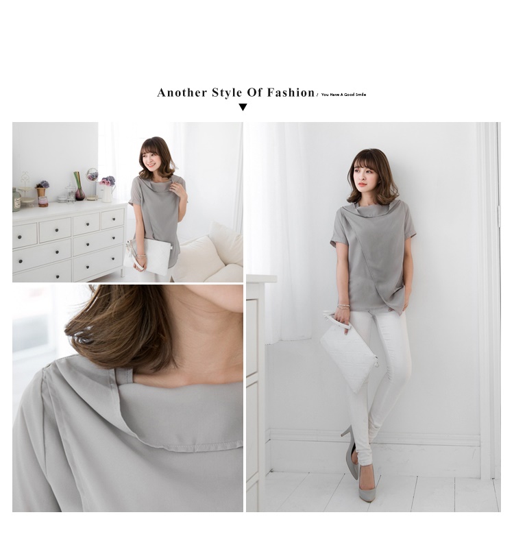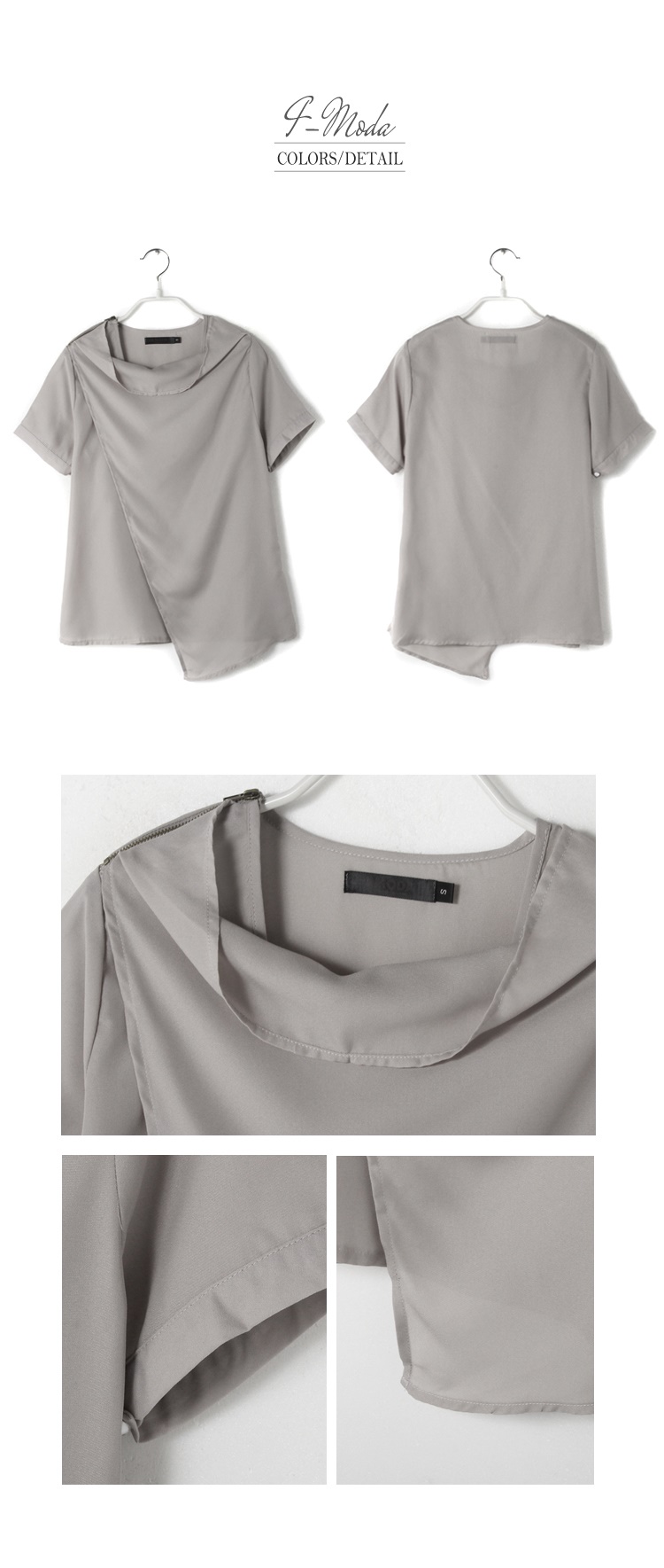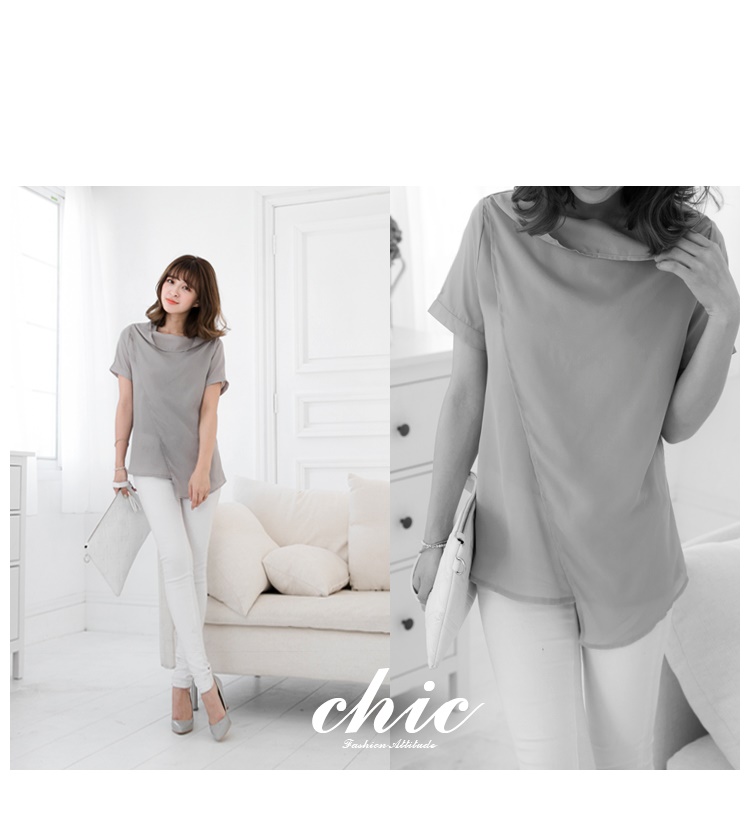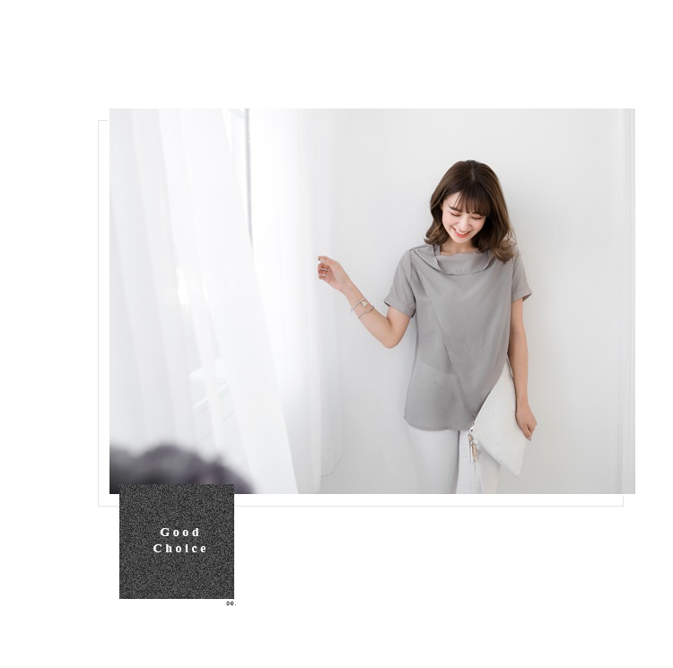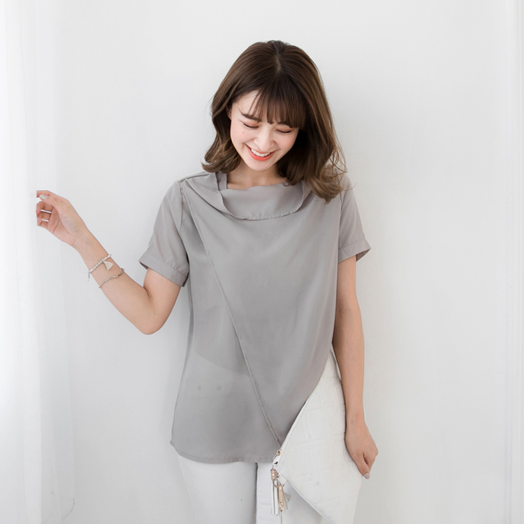 0621新品 拉鍊造型垂墜立領交代償土地二胎叉剪裁雪紡上衣.2色