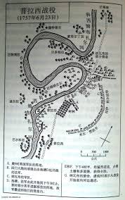 戰役開始的時候,東印度公司的指揮者克萊武並沒有採取主動進攻,而是讓士兵們構築戰壕固守。他為了取勝,買通了孟加拉軍隊的將領米爾·賈法爾,致使他在戰鬥過程中全程旁觀。 似乎上天的天平從一開始就傾向了英國,1757年6月23日戰鬥當天,忽然下了一場大雨,把孟加拉軍隊的炮火都淋濕了,以致其在戰鬥中發揮不出應有的效應,而克萊武事先早有準備,他在大炮和火藥上都蓋上了油布,因此並沒有受到嚴重的損傷。 戰鬥開始,孟加拉軍隊朝著英軍陣地衝鋒,英軍便使用火炮對其進行了猛烈的打擊,導致孟加拉軍損失慘重.