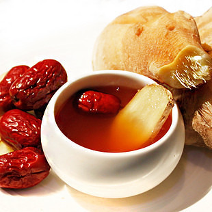 紅棗是我國民間傳統的藥物之一,據明代李時珍的《本草綱目》記載:「干棗潤心肺、止咳、補五臟、治虛損,除腸胃癖氣。」「大棗味甘無毒、主心邪氣、安中養脾、平胃氣、通九竅,助十二經。」果實為緩和強壯劑,常用為滋藥,治瀉痢、調營工、療寒熱、治陽痿、貧血、脾虛泄瀉、心悸、失眠、盜汗、血小板減少性紫癜等症;姜味辛,性溫。能開胃止嘔,化痰止咳,發汗解表。
