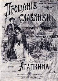 現在所熟悉的《斯拉夫女人的告別》,應該便是1965年的亞曆山德羅夫紅旗歌舞團維克托·費奧多羅夫(Виктор Федоров)作詞、薛範老師譯配的版本。然而,當瓦西裡·阿伽普庚於1912年在第一次巴爾幹戰爭中創作《斯拉夫女人的告別》時,是沒有歌詞的——這也就意味著所有人都可以為這首名曲填詞。第一次世界大戰期間,沙俄軍中學生自願兵最先作詞了《你撫育我們成長》;1916年布魯西洛夫攻勢時又有了《布魯西洛夫突破》(Брусиловский Прорыв)。1917年俄國內戰爆發後,《斯拉夫女人的告別》則成了紅白兩軍一齊高唱的軍歌:布爾什維克的工農紅軍唱,鄧尼金的志願軍也唱,高爾察克的人民軍也有自己填詞的《西伯利亞進行曲》(Сибирский Mарш)。《斯拉夫女人的告別》甚至還火到了國門外,在波蘭成為了《低垂的楊柳在歌唱》(Rozszumiały się wierzby płaczące)、在芬蘭成為了《自由俄羅斯》(Freya Venäjä)、在以色列成為了《越境》(בין גבולות)……