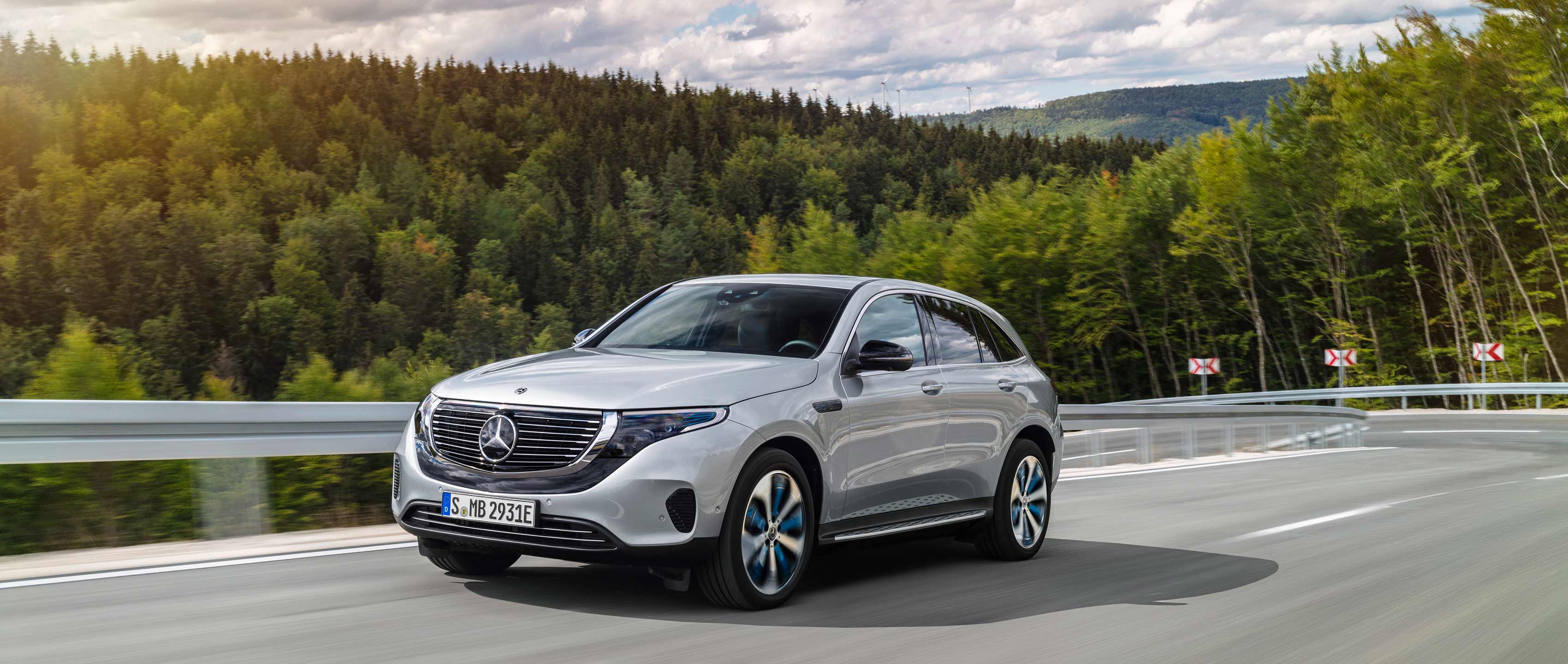 EQC是純電動SUV,配備2個電動馬達,百公里加速5.1秒。車內搭載大型顯示器,可進行語音操作,例如對汽車説「充電到80%」。