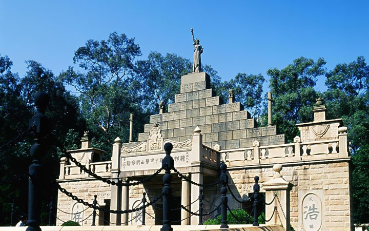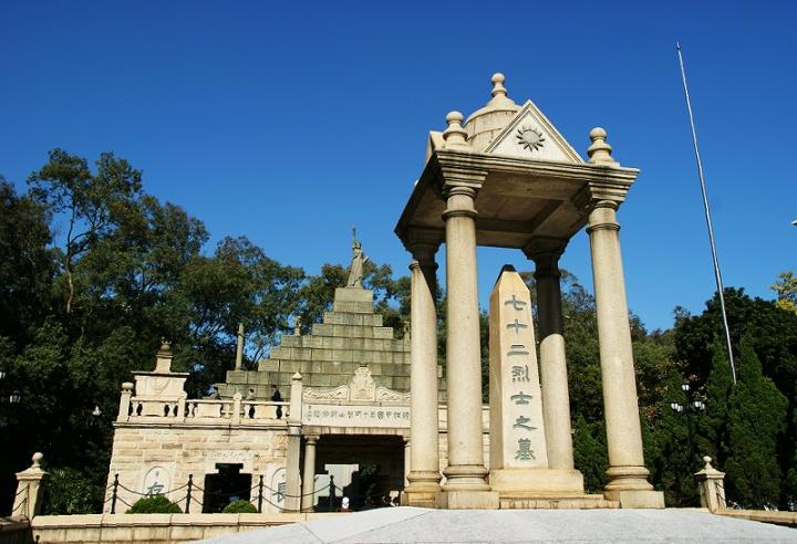 【碧血黃花歌詞】:我們來看神聖的黃花崗,我們來看不朽的黃花崗,碧血化為怒潮湧向珠江,黃花滿地萬世流芳。